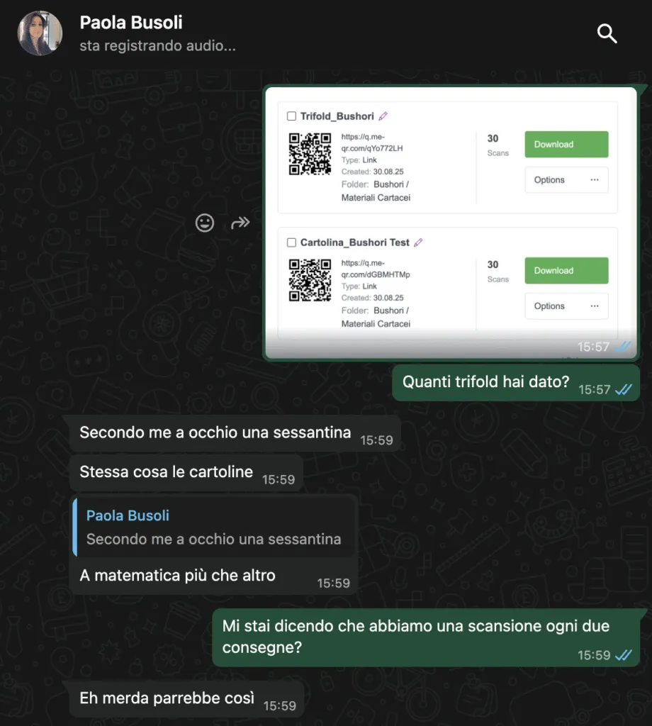 Paola’s feedback confirms the success: one scan every two brochures delivered. A tangible result that transforms design into a conversion lever.